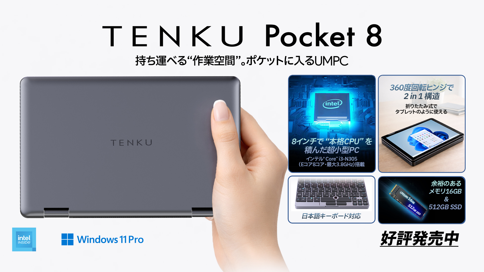 久しぶりの8インチUMPC「TENKU Pocket 8」発表 Core i3にRAM16GBで9万4800円