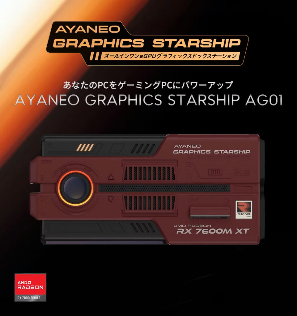 eGPUを内蔵した、Type-C ドッキングステーションである「AYANEO AG01」は 今までにないデザインと豊富な拡張ポートを搭載し、さらにゲーミング性能を大幅にパワーアップするeGPU機能を内蔵。Thuderbolt 3/4 もしくは USB4 40Gbps を搭載のPCにケーブル一本で接続するだけ(※)。すべてのシーンにおいて最高のパートナーとなるでしょう。